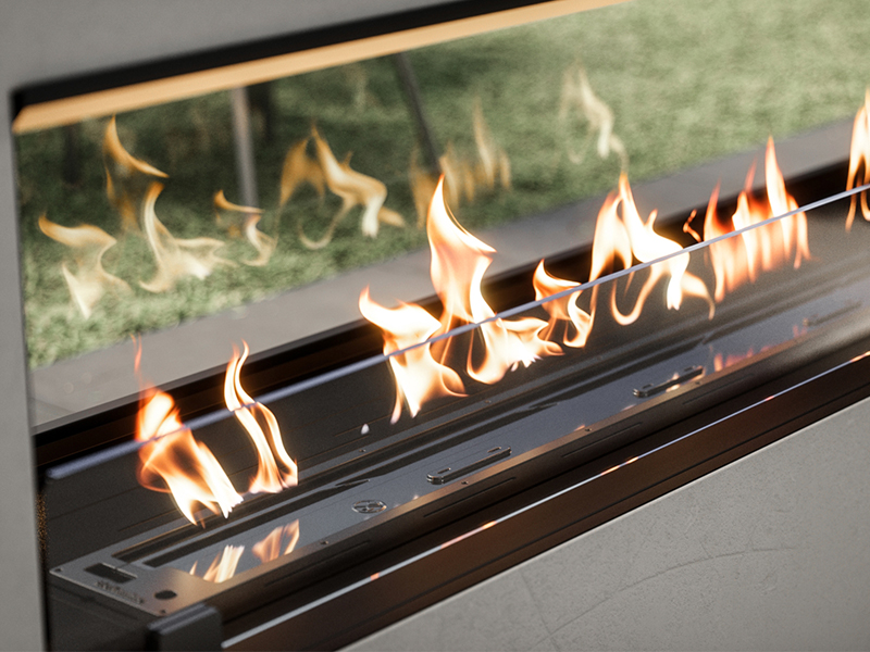 BKBF-BVF è il biocamino da incasso bi-facciale chiuso con un vetro fisso da uno dei due lati. E’ stato pensato per la separazione di ambienti.