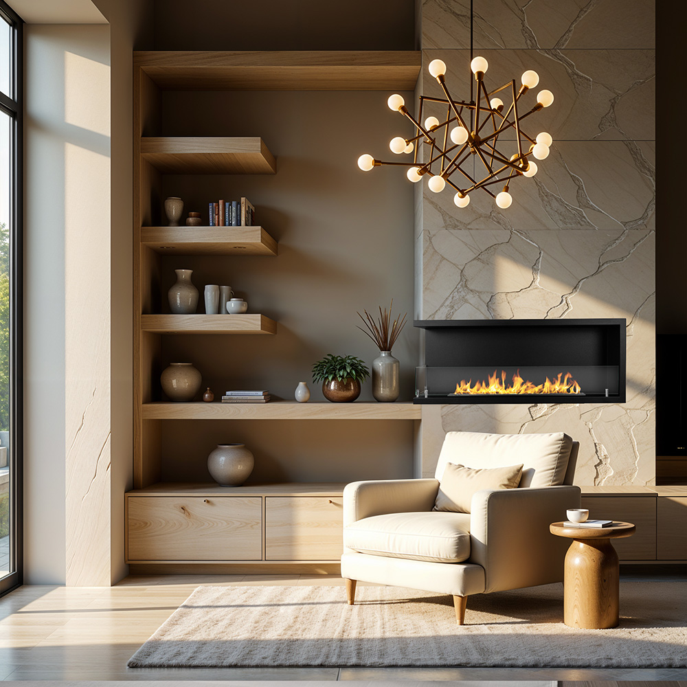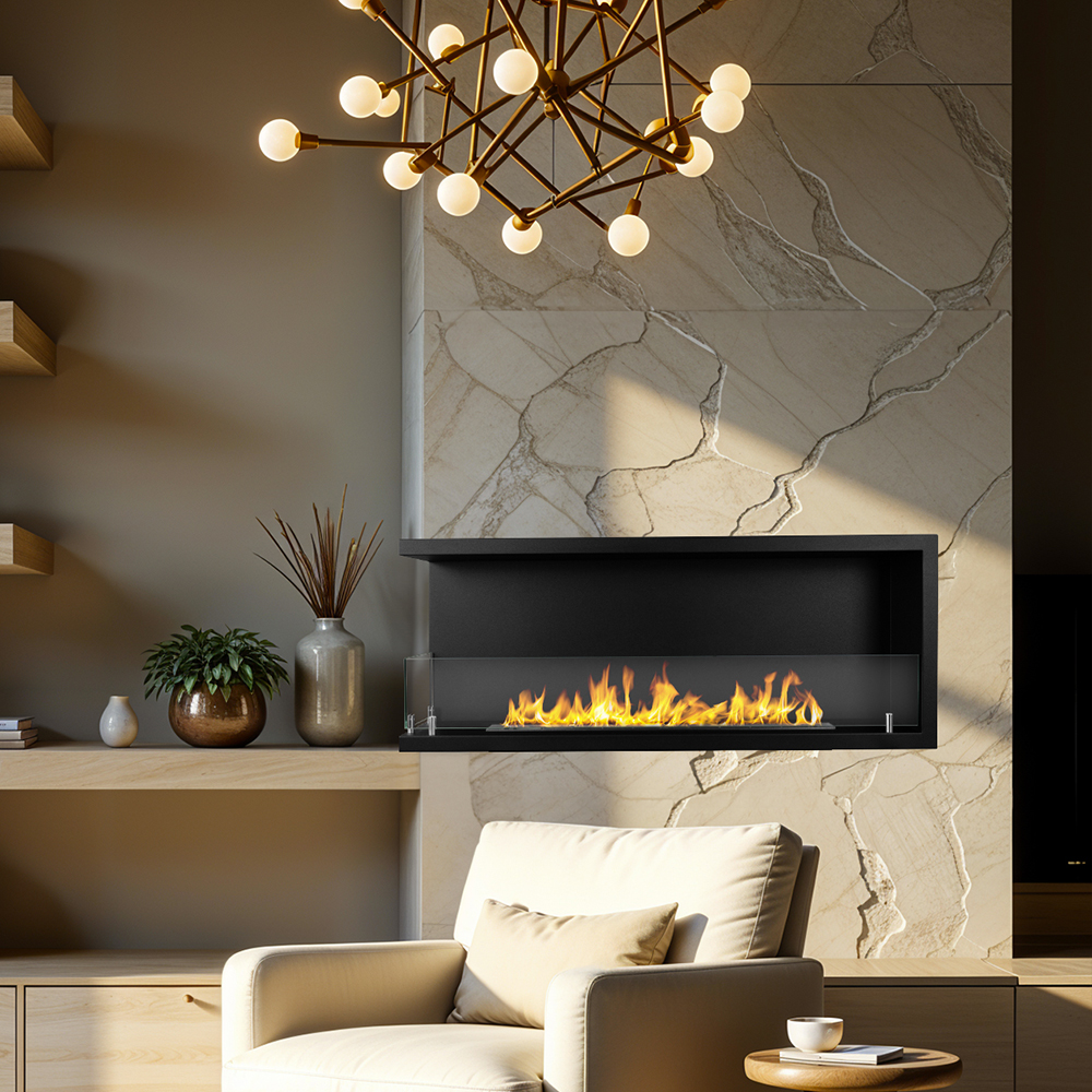 Il Biocamino Sustri 120 è un elemento architettonico di grande fascino, progettato per ridefinire lo spazio con eleganza e leggerezza visiva. Grazie alla sua apertura su due lati, questo modello da incasso crea un suggestivo dialogo tra gli ambienti, permettendo alla fiamma di diventare protagonista da più punti di vista e regalando una sensazione di continuità e profondità agli spazi.